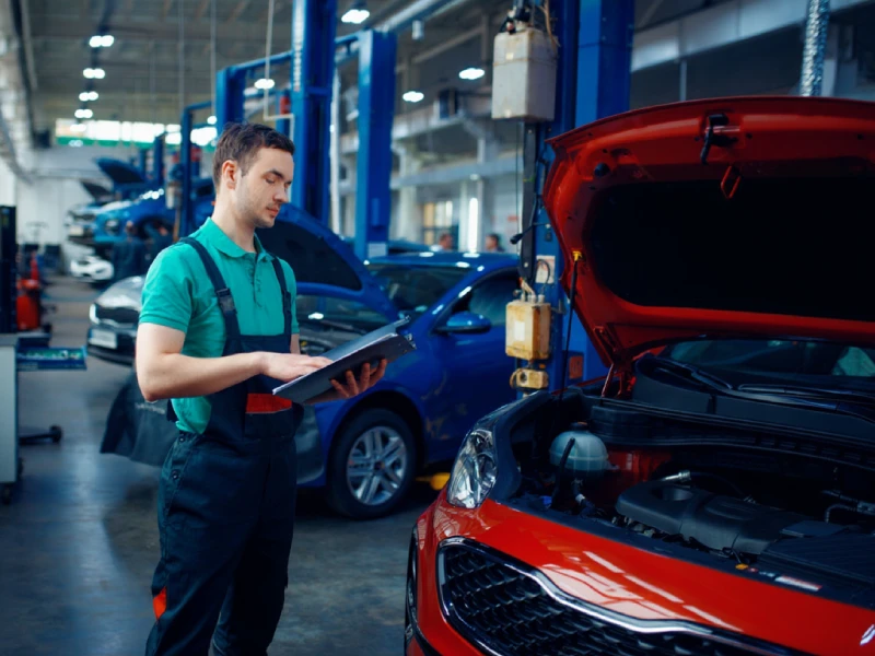 Showcase of our facility, technicians at work, satisfied customers, and vehicles before/after service.